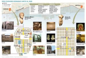 Plutarco escribió medio centenar de biografías de personajes históricos agrupadas por parejas en las que comparaba un personaje griego con otro romano. Si hubiese escrito sobre ciudades,seguro que se habría fijado en Baetulo y Barcino (Badalona y Barcelona),fundadas en la provincia de Hispania,una de las más prósperas del imperio romano en el siglo I a.C.,que tuvieron una historia parecida a lo largo de los siglos y que ha continuado hasta nuestros días. A falta de Plutarco,dos arqueólogas que investigan los restos arqueológicos de estas dos ciudades desde hace años: Pepita Padrós en Baetulo y Julia Beltrán en Barcino,repasan la vida paralela de estos dos asentamientos milenarios.