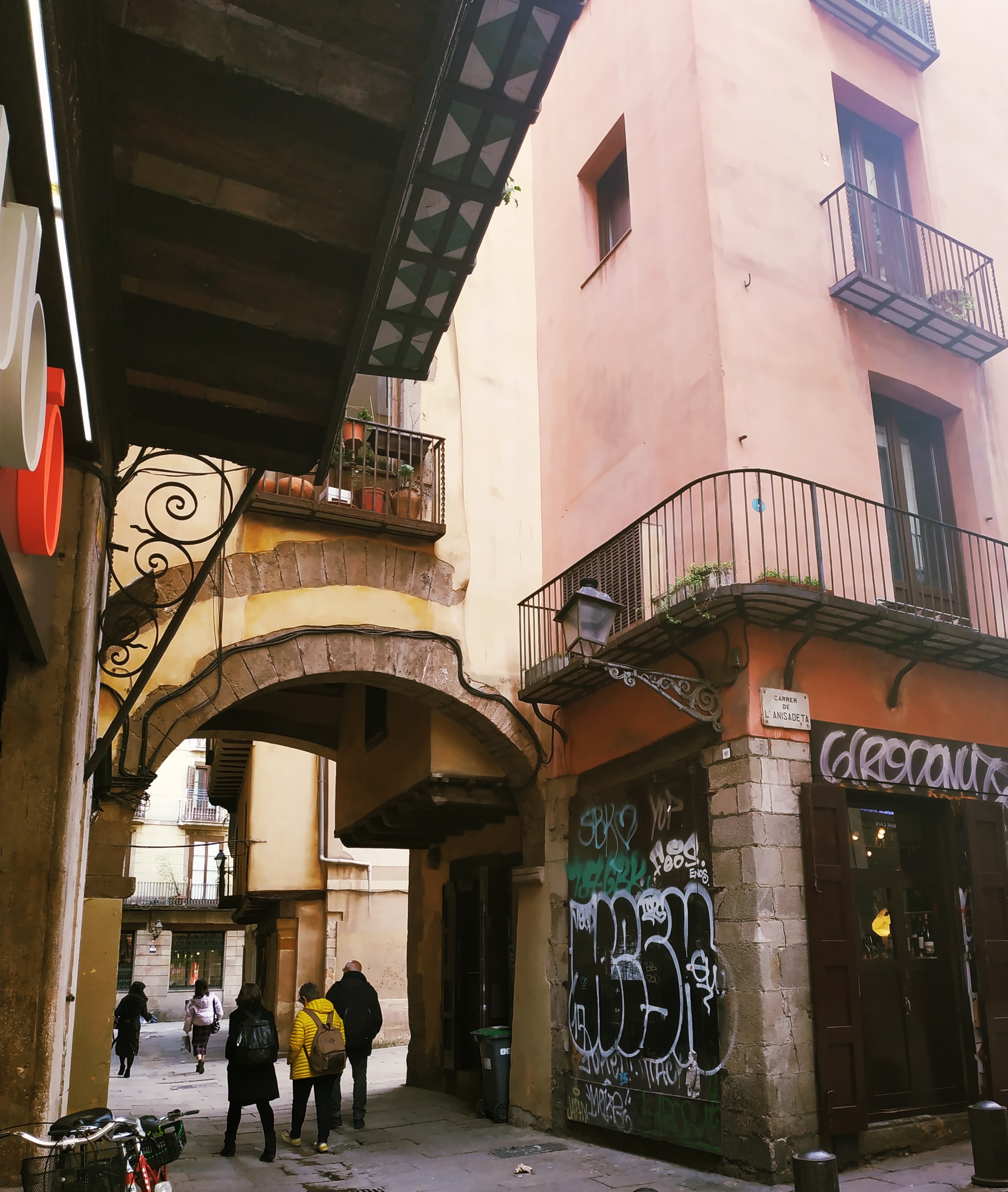 Tercero. Una simple observación aérea de la trama urbana de esta zona del Born transmite la percepción visual de que se dibujan entorno a Santa María del Mar una serie de formas elípticas y de distinto radio. Se trata de una realidad también observable en las trazas urbanísticas de Lecce o Córdoba,y también en Lucca y Florencia. Es la adaptación urbanística posterior a un espacio preexistente. Por ejemplo,la curvatura del edificio frontero a la fachada principal de la iglesia de Santa María del Mar o la que originalmente se advertía en la calle Sombrerers. En el supuesto que la arena hubiese estado en el espacio que ahora ocupa Santa María,esta estructura lúdica romana tendría la misma superficie de otros anfiteatros romanos existentes en Hispania. Una gran concentración inusual de bóvedas y arcos medievales en las calles del citado entorno permiten no descartar que alguno tuviera un origen mucho más antiguo,al tratarse de soluciones arquitectónicas habituales en las arenas.