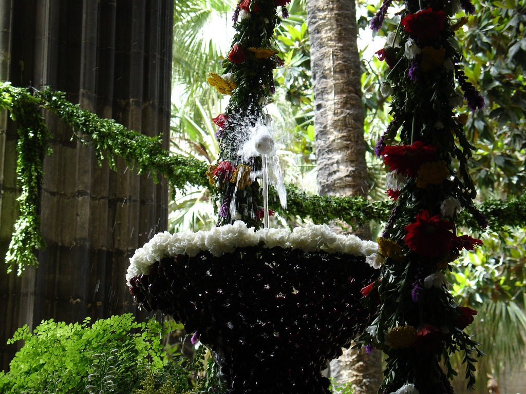 Cada año,durante la festividad del Corpus,la tradición de «l’ou com balla» («el huevo como baila») se instala en el claustro de la Catedral. Es una costumbre que consiste en hacer bailar un huevo en el surtidor del claustro,ornamentado con flores y frutas. Antes de colocar el huevo encima del surtidor de la fuente,se vacía y posteriormente se sella con cera para tapar el agujero creado para su vaciado. A continuación se coloca encima del surtidor y éste empieza a girar y girar,dando la sensación de que está bailando,de ahí su nombre,»l’Ou com Balla».