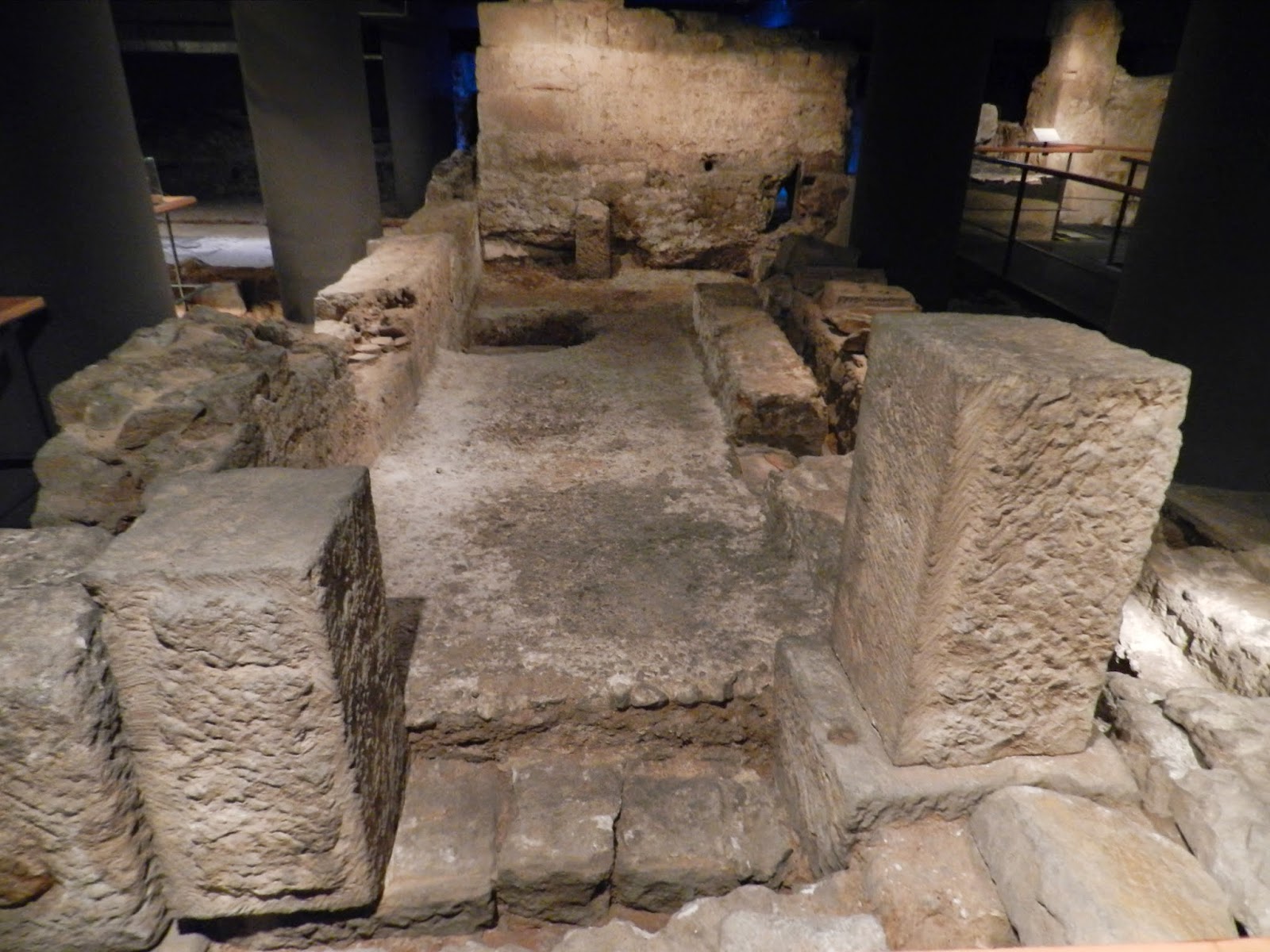 Cuando iniciamos la visita al subsuelo del Museu d’Història de Barcelona,al barrio de talleres y factorías,los primeros restos arqueológicos que nos encontramos corresponden a una lavandería (fullonica) y a una tintorería (tinctoria).